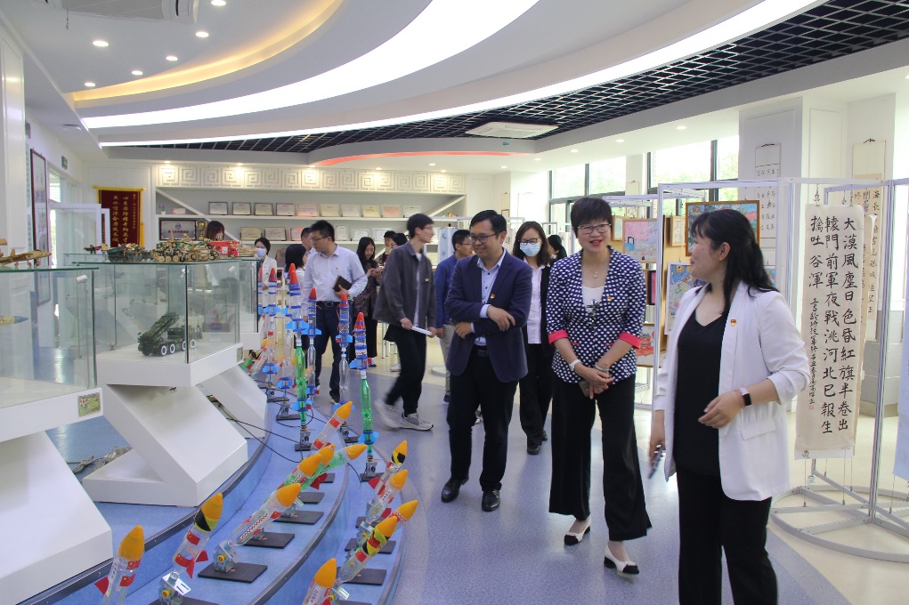 步入校园,在李燕华的带领下,王静、魏传成一行参观了学校精神文明创建成果展。陈列厅、教室过道、长廊、艺术课堂、转角博物馆,无不展现出佘外优良的校园文化氛围。图书馆内,佘外学生整齐划一的书本舞令人耳目一新,展现出青少年的活力与风采。