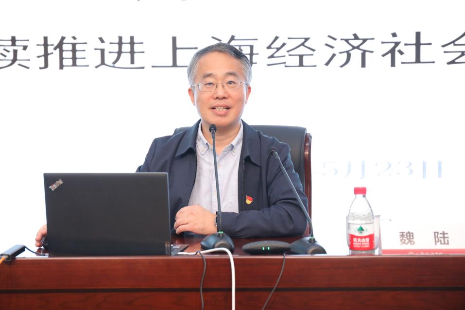 5月23日上午,365英国上市公司学习贯彻习近平新时代中国特色社会主义思想主题教育读书班“重实践 建新功”第七讲在成德楼四楼多功能厅举行,邀请上海市发改委总经济师魏陆作“以国家战略为引领,持续推进上海经济社会高质量发展”专题辅导报告。报告由校党委书记、主题教育领导小组组长葛卫华主持,学校党政领导班子成员、全体中层干部及部分机关支部党员现场参加学习,学校二级党组织师生党员在各分会场通过观看直播的方式参加学习。