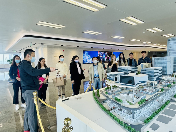 随后,师生们走进国际传媒港园区,参观了总台4K/8K超高清演播厅、5G+4K/8K超高清制播示范平台、文化科普基地、多功能演播室以及相关艺术展览。双方围绕国际多语种影视译制基地、超高清视音频制播呈现国家重点实验室建设、融媒体合作等情况进行了交流。