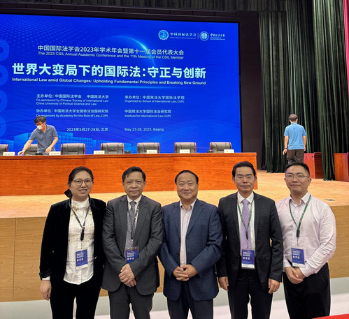 5月27日至5月28日,以“世界大变局下的国际法:守正与创新”为主题,由中国国际法学会和中国政法大学主办、中国政法大学国际法学院承办的“中国国际法学会2023年学术年会暨第十一届会员代表大会”在京举行。大会审议并通过了中国国际法学会第十次理事会工作报告,选举产生了中国国际法学会第十一届理事会。在随后举行的第十一届理事会第一次会议上,与会当选理事投票选举产生了会长、副会长、秘书长和常务理事。其中,我校国际法学院特聘院长徐国建当选中国国际法学会常务理事,我校人工智能法学院院长杨华与国际法学院副院长石俭平当选中国国际法学会理事。