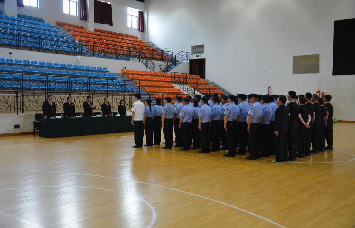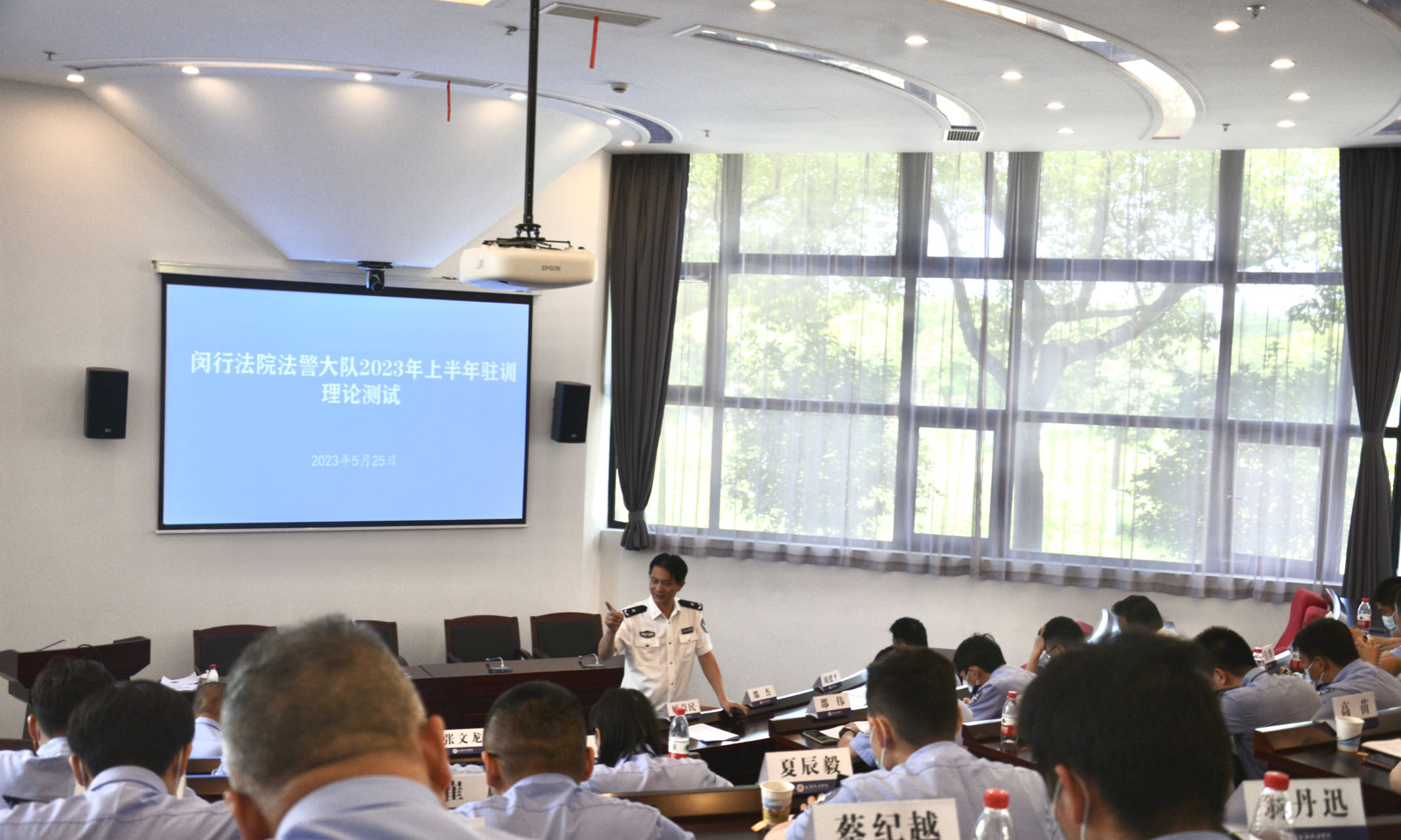 闵行法院司法警察大队大队长顾益民带领大家完成了闵行法院法警大队驻训理论测试。