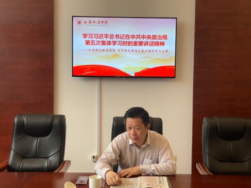 6月8日上午,中国-上合基地办公室学习会在综合楼国际会议中心111会议室举行,专题学习研讨习近平总书记在中共中央政治局第五次集体学习时的重要讲话精神。校党委常委、副院长、中国-上合基地办常务副主任、党总支书记罗立刚作导读领学,中国-上合基地办党总支专职副书记王晓宇、副主任张少英,语言文化学院(国际交流学院)党总支书记魏传成、信息化工作办公室主任倪宇斌等参加会议。