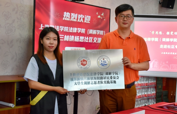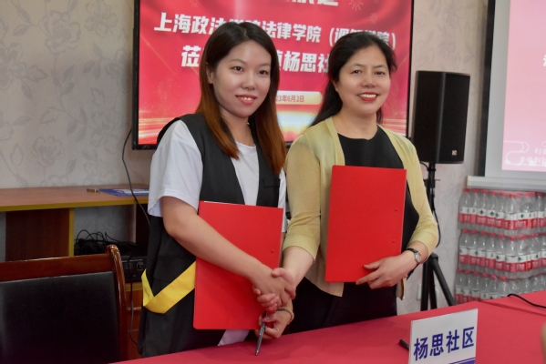最后,双方进行了大学生调解志愿者队实训基地项目的签约和授牌仪式,并向即将参与到两个居民区调解志愿服务工作中来的大学生志愿者们颁发了聘书。