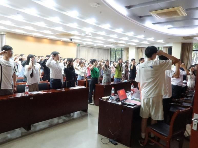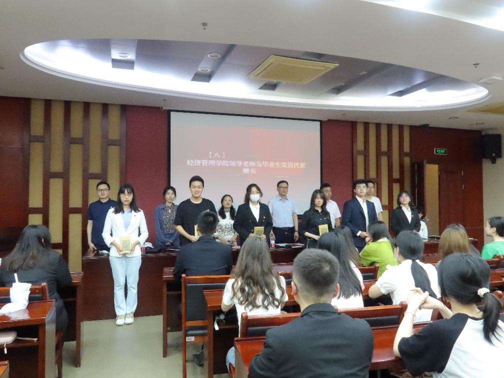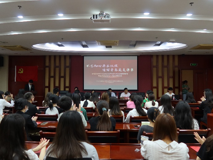 为深入学习贯彻习近平新时代中国特色社会主义思想,落实立德树人根本任务,进一步强化毕业生党员意识和党员身份教育,6月9日中午,经济管理学院在汇知楼107开展2023届毕业生党员离校教育,党总支书记周毅、党总支副书记丁明强、全体党支部书记以及全体毕业生党员参加。