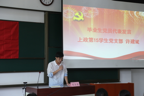 2023届毕业生党员张晓岚、许建斌代表毕业生党员发言,表示将牢记党组织和老师的教诲,勇挑重担、冲锋在前、扎实工作,以实际行动践行党员的初心使命,用卓越的成绩为母校增光添彩。