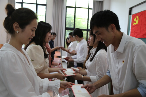 学院领导、学生党支部书记带领毕业生党员和新党员庄严地面向党旗宣誓,并赠予毕业生党员“初心印迹卡”,叮嘱他们时刻不忘初心、不忘党员使命,立足新岗位,谱写建设“法治中国”的新篇章。