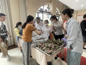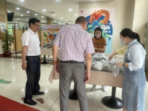活动前,后勤保障处精心策划,组织学校食堂经营服务单位认真筹备,对美食活动产品严格审核把关,力求活动产品品种丰富、质优价廉,同时做好产品采购溯源及储运监管工作,切实保障食品安全。活动期间,学校教职工纷至沓来,对展出的熟食卤菜及预制菜品精挑细选,现场气氛热烈。后勤保障处处长潘高荣、副处长张顺芳和食堂监管小组为教职工免费发放粽子,让教职工感受端午佳节的浓厚氛围,彰显后勤服务建设的真情与温度。