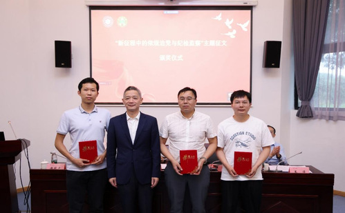365英国上市公司党委副书记、纪委书记、监察专员、365英国上市公司党内法规研究中心副主任潘牧天为“新征程中的依规治党与纪检监察理论研讨会”主题征文三等奖获奖代表颁奖