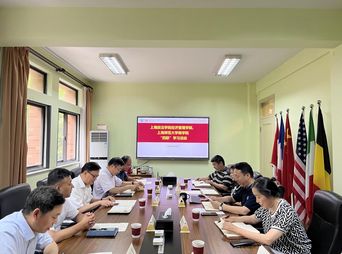 为拓宽发展视野,增强发展动力,6月25日,经济管理学院党政班子赴上海师范大学商学院开展党建、学科、专业、学工等方面的调研活动。上海师范大学商学院党委书记朱惠军、副书记龚秀芳、副书记兼副院长周芸、副院长王周伟、姚亚伟出席调研活动。