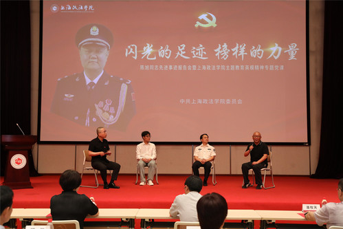 葛卫华说,陈旭同志先进事迹报告会是深入贯彻习近平总书记关于弘扬英模精神的重要指示精神,扎实推进学习贯彻习近平新时代中国特色社会主义思想主题教育的一个有力举措,也是一堂生动的党课。陈旭同志用赤胆忠心铸就忠诚警魂,用不悔坚守践行铮铮誓言,为我们矗立起一座熠熠生辉的时代丰碑。我们要学习陈旭同志对党忠诚的政治品格、开拓进取的创新精神和甘于奉献的为民情怀,以陈旭同志为榜样,追寻英模闪光足迹,传承英模榜样力量,以培养德法兼修、全面发展的高素质复合型应用型人才为己任,为全面建设社会主义现代化国家贡献力量。