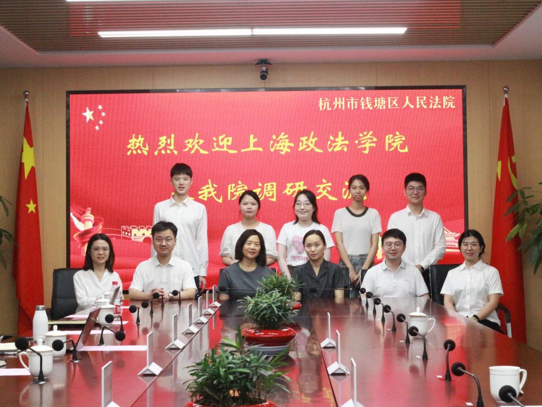 7月10日,调研组来到杭州市钱塘区人民法院,钱塘区法院党组成员、副院长吴文峰对我校师生的到来表示热烈欢迎,并带领调研组参观了钱塘区人民法院党建文化展示厅、法院沙龙会客厅、“案款智能管控”应用场景等。