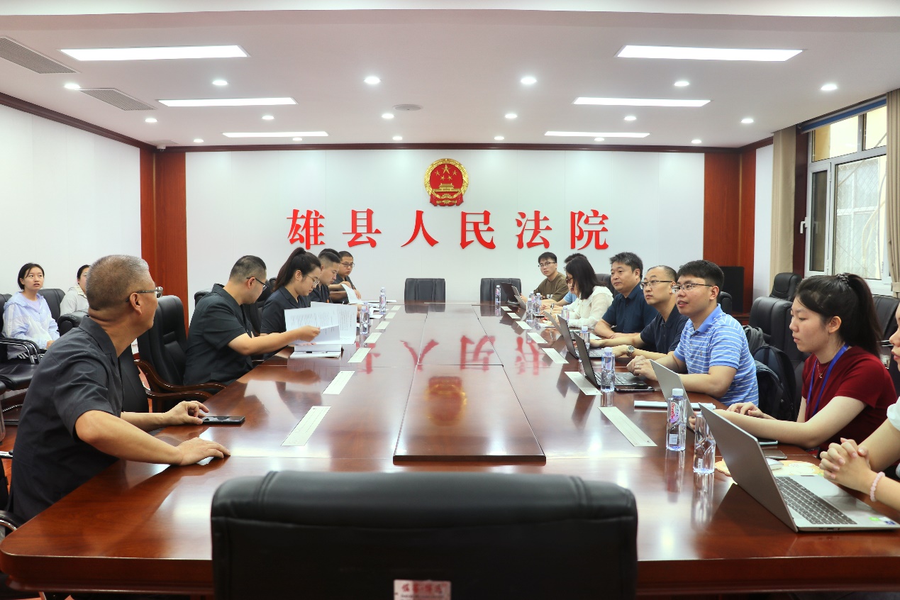 7月13日,师生们赴河北省雄安新区调研。雄县法院党组书记、院长张志洲介绍了目前雄安新区的发展进程以及雄县人民法院审判案件的情况。张志洲表示,虽然目前雄县人民法院处理的涉外民商事案件较少,且主要集中在涉外婚姻领域,但随着雄安新区的建设规划,未来法院不可避免地会涉及涉外民商事案件审判,涉外法治建设刻不容缓。张志洲鼓励同学们积极参与实践,为法治中国建设贡献力量。雄县法院审判委员会专职委员段勇、于逸翔法官对雄县法院的办公环境和布局作了介绍。