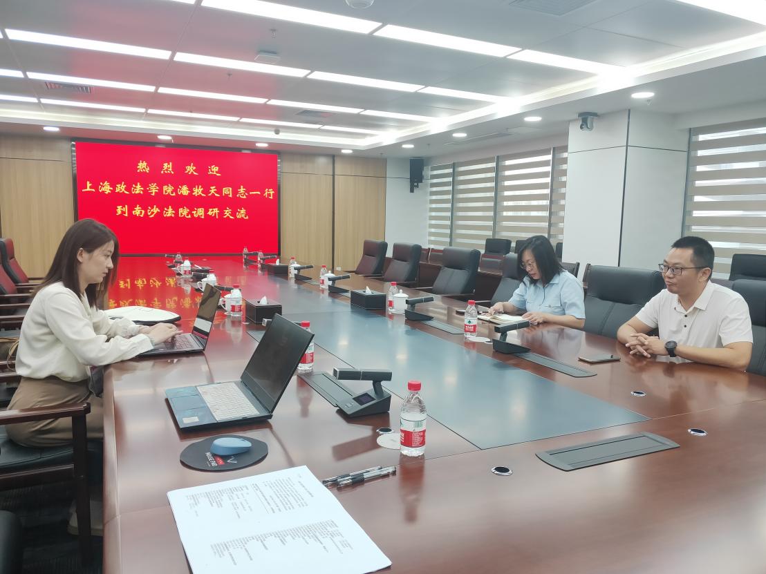刘英明、李泽等与南沙区法院涉外商事审判庭廖活年副庭长、周晓宇法官进行座谈。法官们介绍了南沙法院在加强法官队伍建设、提高审判质效和推进智能化司法等方面的创新探索、取得的显著成绩和遇到的问题。座谈会重点聚焦于域外调查取证与送达、涉外商事案件管辖、准据法选择、域外法查明与适用等关键议题。例如,对于新型涉外商事案件审判中连结点软化对传统管辖权的冲击现象,廖活年副庭长表示,南沙法院基于自身定位,立足大湾区的视野,通常在充分尊重当事人诉讼权利的前提下,经向上级法院请示后有条件管辖缺乏连接点的涉外纠纷案件。作为涉外商事案件审判骨干的周晓宇法官则表示,问题不仅在于是否应由中国法院管辖,更在于应由哪一个法院来管辖,如果一味适用“集中管辖”可能导致审判业务过分集中,不利于涉外商事审判的可持续发展。
