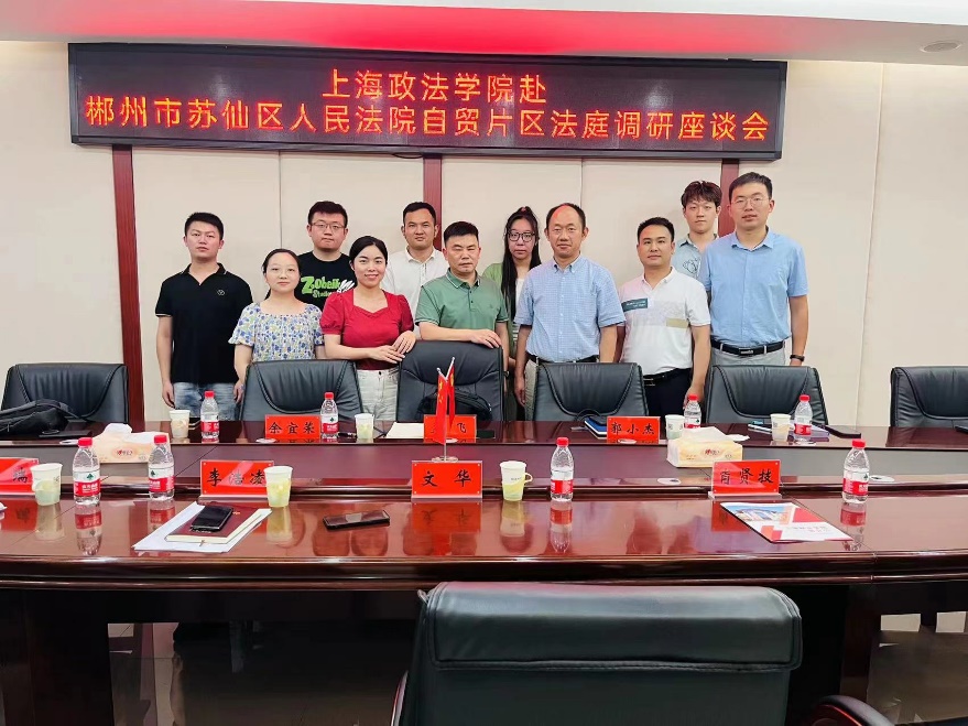 成立于1951年6月的郴州市苏仙区人民法院,是此次调研的最后一站。7月12日,调研组来到该法院进行调研,苏仙区法院党组成员、副院长文华、自贸片区人民法庭(知识产权审判庭)庭长李浩凌、周瑞法官、肖贤技法官等参加座谈。座谈会上,文华副院长对我校“法治中国大调研”项目给予了高度评价,李浩凌庭长详细介绍了自贸片区法庭成立以来受理案件的情况,对涉外民商事案件的特征进行了深度解读。调研组成员就中南内陆自贸区法庭如何更好地服务开放型经济新体制、郴州自贸片区产业发展等问题,与法官进行了深度的研讨。