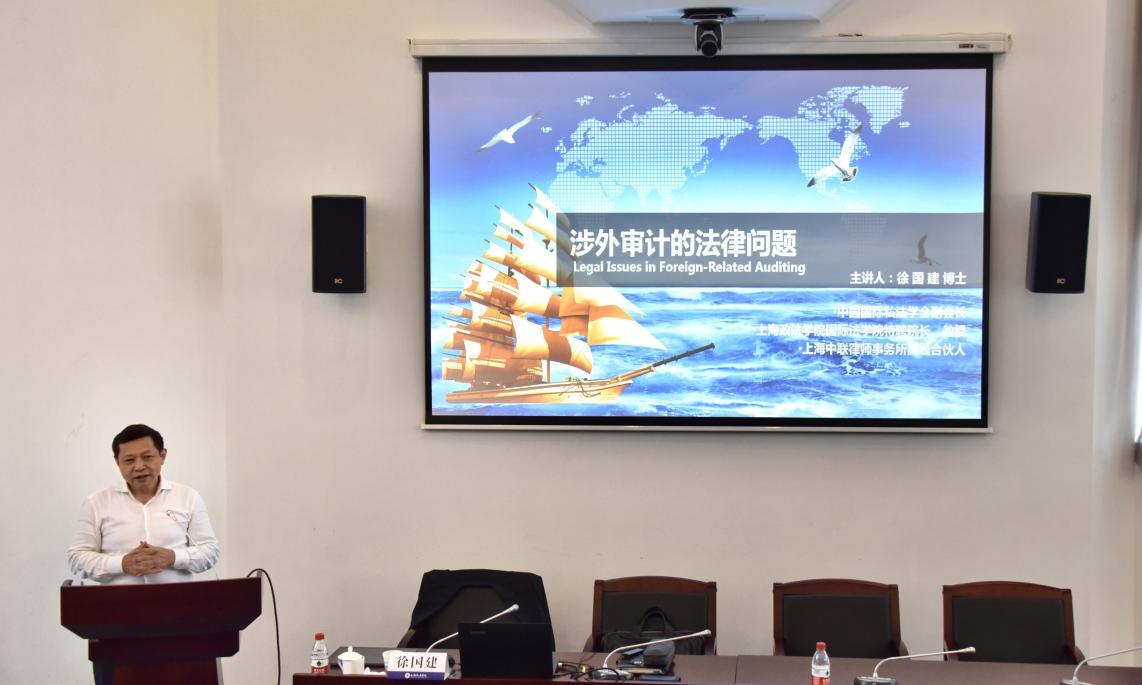我校国际法学院特聘院长、教授,上海中联律师事务所高级合伙人徐国建作“涉外审计的法律问题”专题讲座。