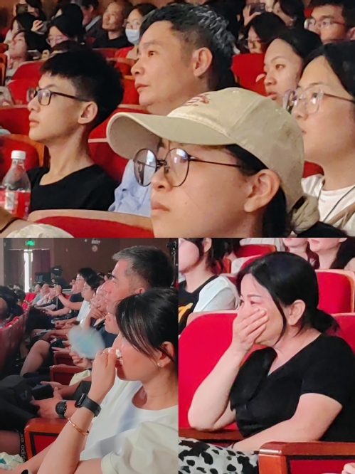 这次音乐会设置了特别环节,大屏上一张张照片展示着这两天上政校园里父母与孩子陪伴和话别的温情画面,视频中真挚的话语既有父母对孩子的祝愿与鼓励,也有孩子对父母的不舍与眷恋,这一场“双向奔赴”,也让现场观众红了眼眶。