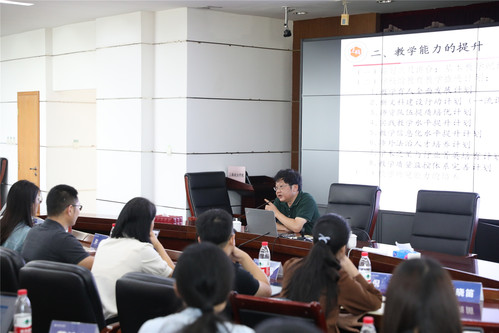 郑少华结合自身多年的工作经验,运用丰富的案例,从“高校教师的业务能力”“教学能力的提升”“科研能力的提升”“团队合作能力的养成”“管理能力的训练”五个方面进行了深入解读,重点强调了教师要“站好三尺讲台”,严格遵守教学纪律,掌握基本教学能力。