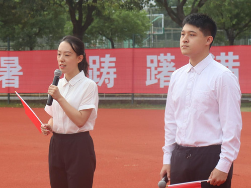 歌赞祖国,家国共兴。在经济法学院王麒皓、政府管理学院吴雪宜同学的带领下,全体师生高唱《国家》,嘹亮歌声同五星红旗共同飘扬在田径场上。这一刻,千言万语汇成一句:我爱你,中国!