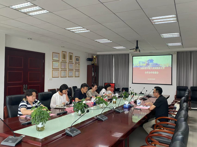 会上,刘志强首先对学院育人理念、专业布局和师生情况作了介绍。他表示,基于经管学生对留学需求的增加,希望在合作办学方面与美国凯泽大学开展深度合作,以经济与金融、国际贸易、财务管理、电子商务及法律本科、国际商务、审计学、法经济学硕士为试点,建立课堂交流、中外合作授课、线上学术交流等项目,并签订学分互认协议,为双方申报合作办学项目做好铺垫。Gavin Chen回应道,凯泽大学现有的经管专业满足合作办学的需求,对前期工作表示支持,并对双方合作办学项目表示期待。洽谈中,双方希望未来能够为人民币国际化提供后备人才,立足上政和上合基地,利用双方在金融科技和法律政治研究上的优势,为上海国际金融中心建设输送前沿科技实操型人才。
