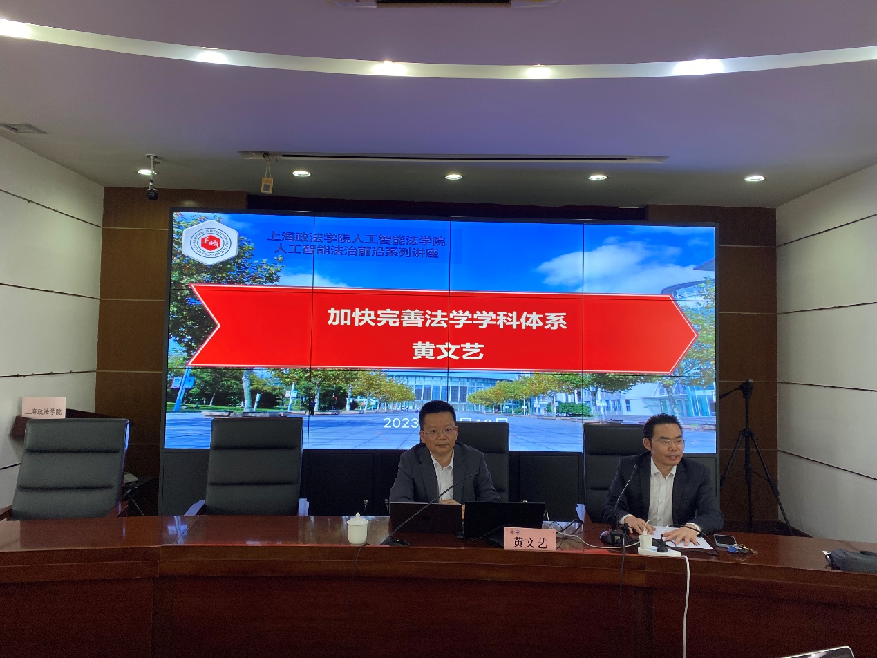 10月10日下午,由人工智能法学院主办的“人工智能法治前沿系列讲座”第一讲在求实楼513举办。教育部高等学校法学学科教学指导委员会委员、《中国法学》总主编、中国人民大学法学院院长黄文艺教授应邀作“加快完善法学学科体系”的学术讲座。讲座由人工智能法学院院长杨华教授主持,科研处处长刘军教授、刑事司法学院院长彭文华教授、国际法学院特聘院长徐国健教授、人工智能法学院党总支书记彭辉,以及上述学院、上海司法研究所等单位的十余名教师代表、近百名师生现场聆听了讲座。