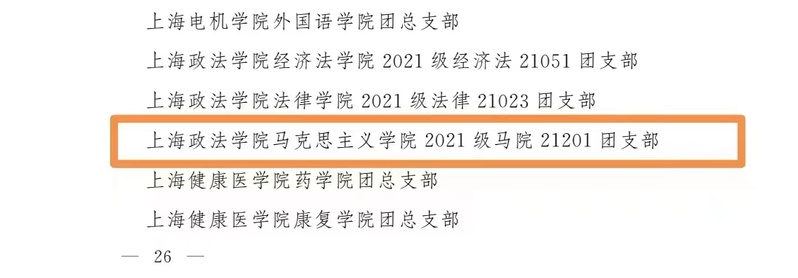 近日,为表扬先进、树立典型,持续激发高校、高中阶段学校基层团组织、社团、团干部活力,共青团上海市委员会、上海市教育委员会决定表扬2023年上海高校、高中阶段学校活力团组织、活力社团,团干部示范典例,并授予荣誉称号。在此次示范典例表扬中,我校马克思主义学院团委荣获“2023年上海高校活力团委”称号,学院21201团支部荣获“2023年上海高校活力团支部”称号。