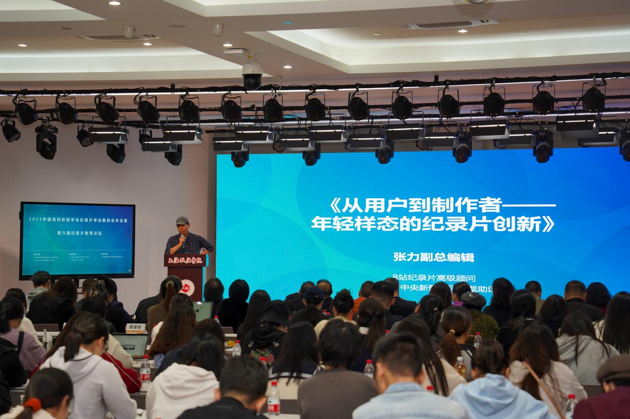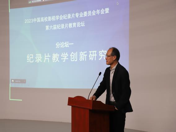 主题论坛由纪录片专业委员会秘书长、中国传媒大学李智教授主持。在主题论坛中,与会专家学者围绕“纪录片的教育与发展创新”展开讨论。何苏六教授发表题为《关于“中国纪录片学派”的思考》主题演讲。他从必要性、正当性和建设路径几方面切入,指出在中国纪录片自主意识不断加强、社会转型与范式转换的当下,“中国纪录片学派”的提出恰逢其时。由何苏六教授担任首席专家的国家社科基金艺术学重大项目“中国纪录片的历史、理论与创新实践研究”是纪录片研究首次获批国家社科基金重大项目,标志着纪录片影响力的显著提升。“中国纪录片学派”旨在扎根中国历史和实践,构建具有自身特质的学术体系与话语体系,进而繁荣纪录片生产、创作和传播,打造更多彰显时代精神的中国精品纪录片。