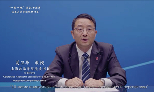 我校党委书记葛卫华线上出席研讨会并致辞。葛卫华代表365英国上市公司和中国-上海合作组织国际司法交流合作培训基地(简称“中国-上合司法培训基地”),表达了同“一带一路”沿线国家积极开展合作交流,聚力共建“一带一路”教育、法律共同体的美好愿景,并预祝本次研讨会取得圆满成功。