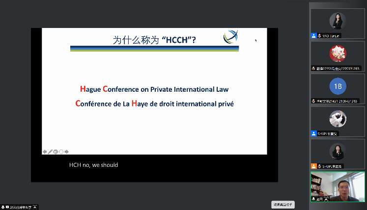 赵云教授首先介绍了海牙国际私法会议的发展历程、机构设置、主要功能。讲解了海牙国际私法会议的主要活动、关键议题、优势价值以及海牙公约的形成过程、海牙公约的全球化进程、中国与海牙国际私法会议等相关内容。之后,赵云教授就海牙国际私法会议在亚太区的发展、运营情况以及海牙国际私法会议在亚太区的影响力进行了简述。分享了过去海牙国际私法会议在便利国际贸易、确保人权实现等方面做作出的贡献和得到的经验。