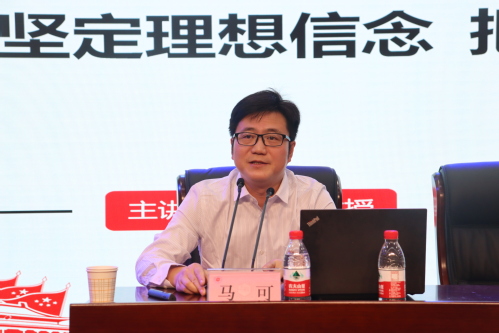 上海工程技术大学教研室主任、党支部书记马可教授为学员们作本期培训班第一讲党课“坚定理想信念、把牢思想开关”。他从中国“奔月梦”作为切入点,讲述了理想信念信仰的内涵及如何坚定马克思主义、共产主义信仰,分析了伟大建党精神的丰富内涵和建党百年中国精神谱系,并勉励学员们要把个人的命运与国家的命运联系在一起,把个人的理想融入国家和民族事业中,为实现中国梦贡献力量。