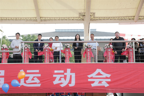 开幕式上,校领导与嘉宾、师生代表共同为裴聪琪校友捐赠建设的运动场启用剪彩。