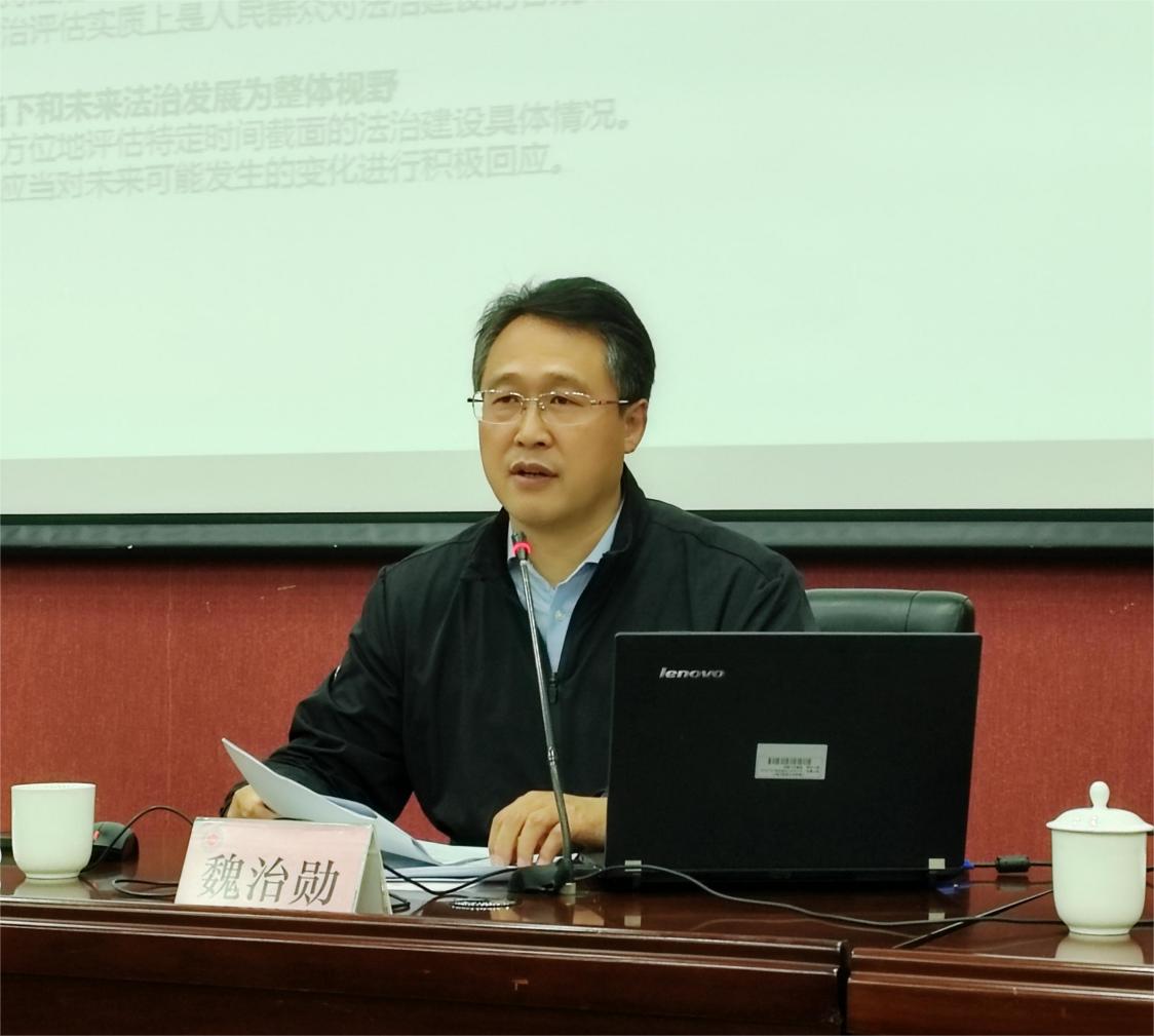魏治勋教授强调,法治评估是一项大规模的系统工程,要不断提高战略思维、历史思维、辩证思维、系统思维、创新思维、法治思维、底线思维能力,唯此才能担负起对法治建设事业实施社会性考核和方向性引导的时代重任。