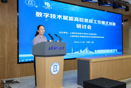 11月3日下午,由上海对外经贸大学统计与信息学院、上海开放大学信息安全与社会管理创新实验室联合举办的“数字技术赋能高校思政工作模式创新”研讨会在上海对外经贸大学松江校区召开。我校学工部副部长徐丽红出席并作主旨报告,辅导员代表参加研讨会。