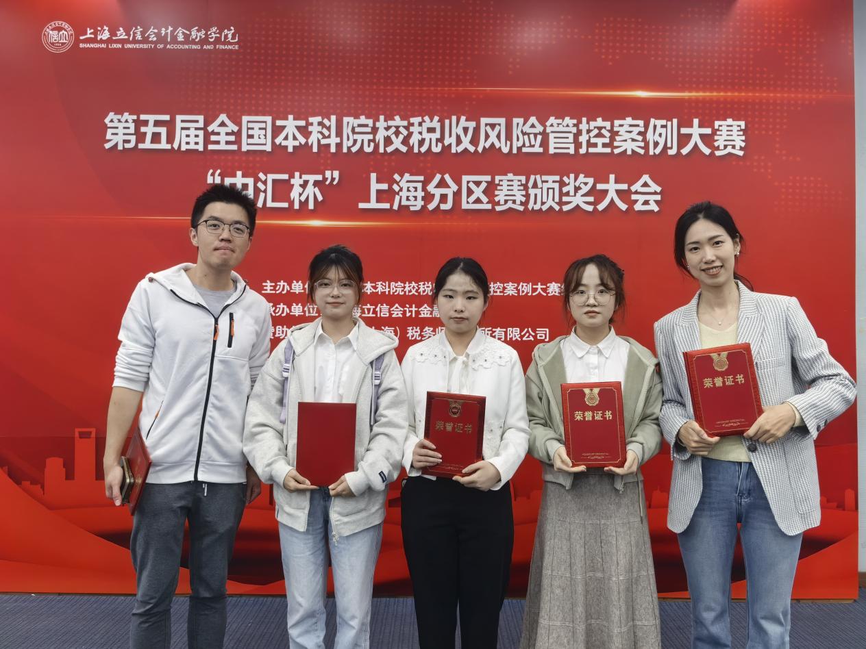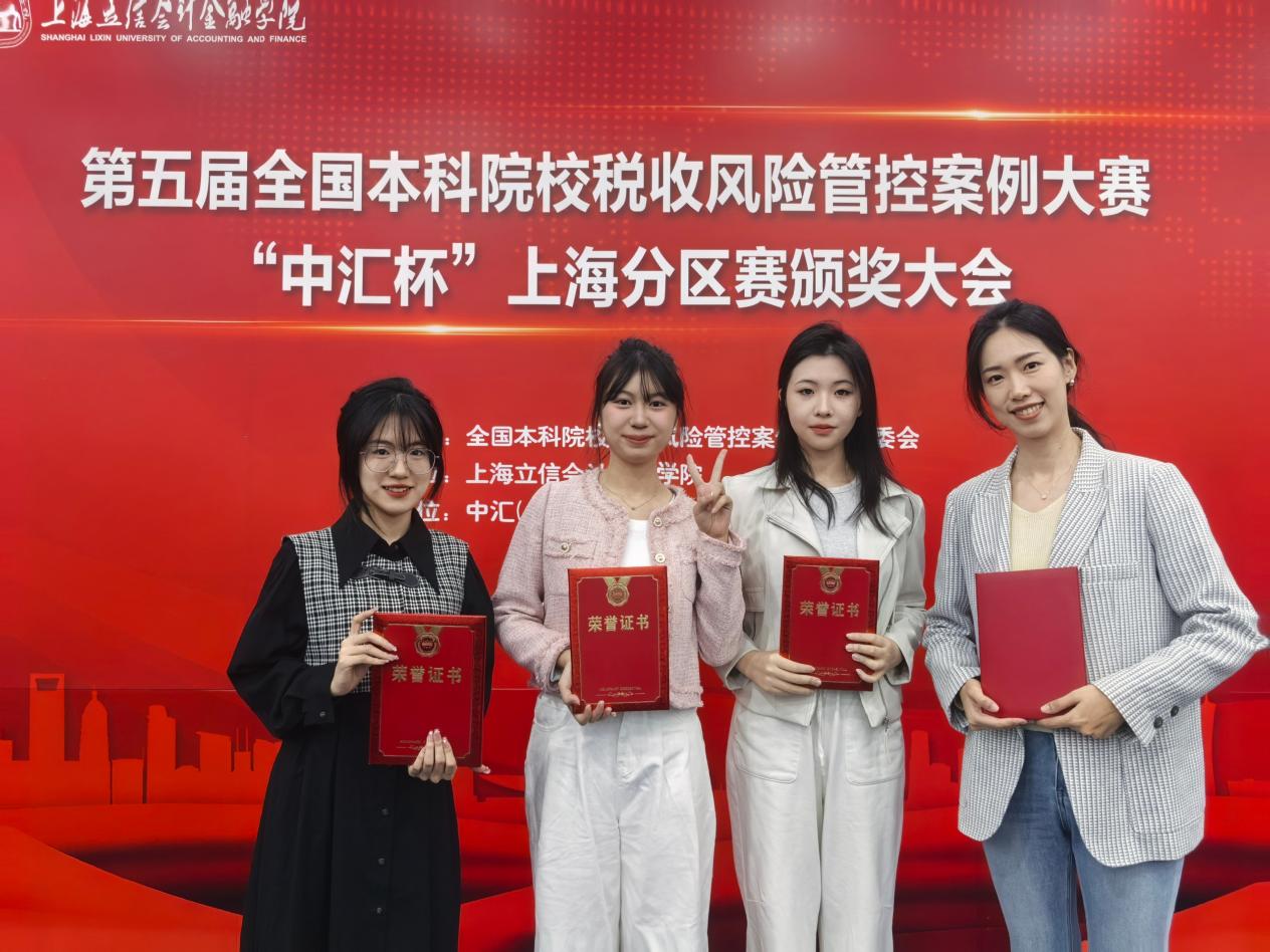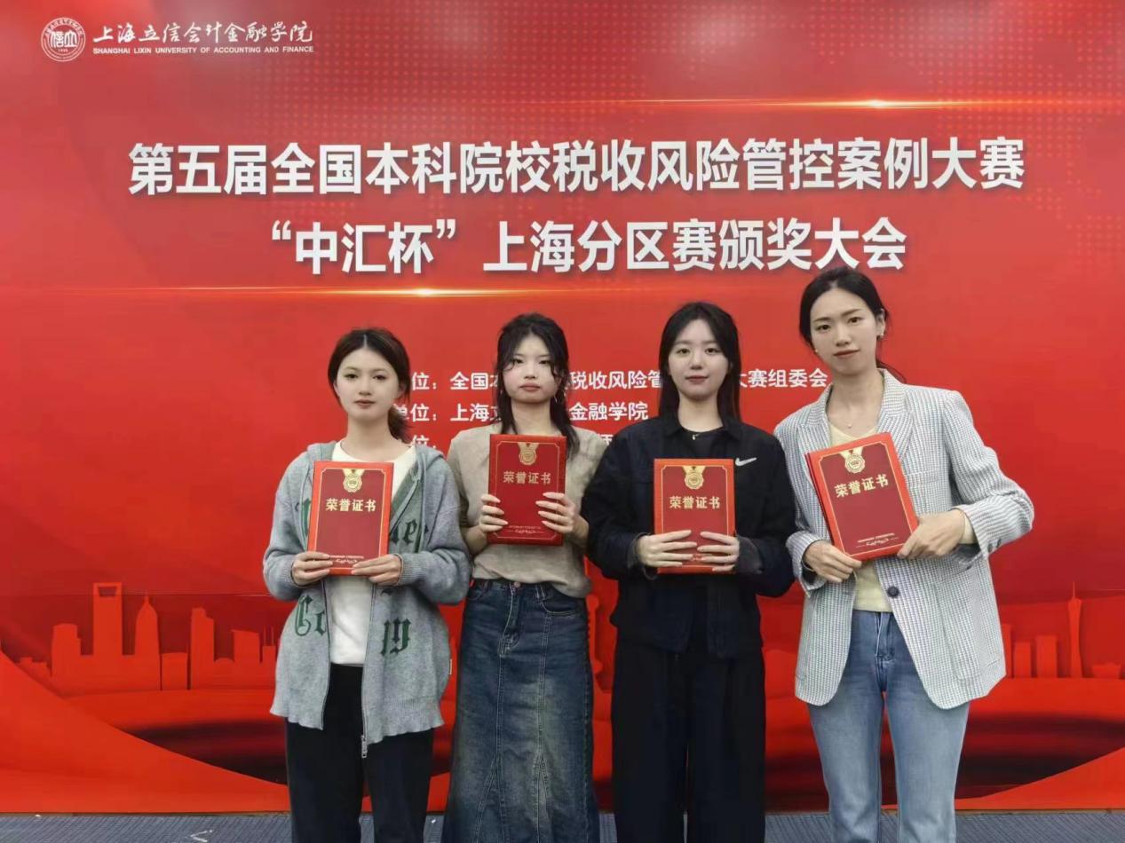 11月8日,第五届全国本科院校税收风险管控案例大赛“中汇杯”上海分区赛颁奖大会在上海立信会计金融学院松江校区举行。我校27位来自经济管理学院税收班的同学组成9支队伍参赛,在税收学专业教研室李霞老师、王旸老师、华腾达老师和陈玉倩老师的带队指导下,凭借扎实的专业知识、高超的分析能力和团队合作精神,顺利完成了比赛流程并提交了税务风险管控报告。