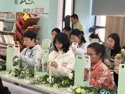 在讲解过程中,花艺老师以实际演示的方式展示了插花的方法和技巧,熟练地指导大家如何处理和组合花材。学校师生们跟随着花艺老师的指导,修剪、整理、拼插手上的花材。活动现场,阵阵花香扑鼻而来,大家一边研究创作,一边不断分享心得。欢声笑语中,大家不仅亲身体验到了插花制作的乐趣,也感受到了活动中的幸福氛围。细腻的花香在空气中弥漫,情感也在活动中延续。