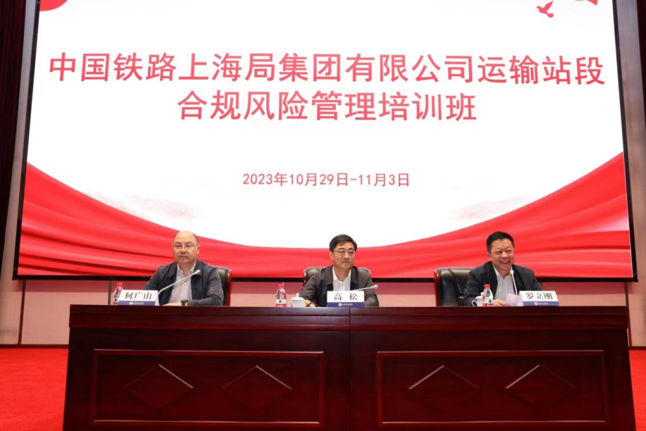 10月30日至11月3日,中国铁路上海局集团有限公司运输站段合规风险管理培训班在中国-上海合作组织国际司法交流合作培训基地举办,来自集团各单位150名学员参加培训。中国铁路上海局集团有限公司副总经理高松,我校党委常委、副院长罗立刚,中国铁路上海局集团有限公司总法律顾问何广山出席开班仪式。