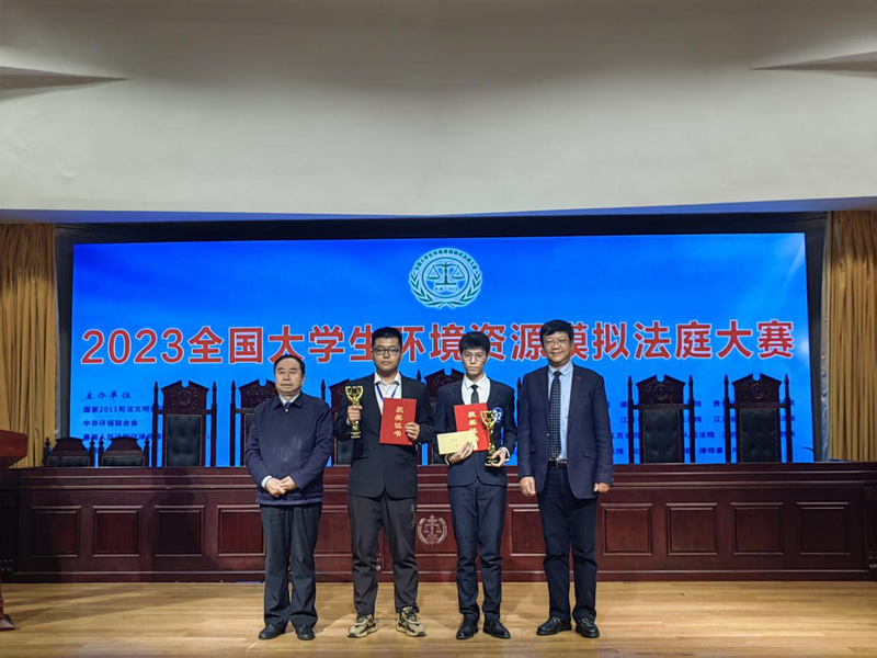11月19日,由国家“2011计划”司法文明协同创新中心、中华环保联合会、最高人民法院环境资源司法研究中心联合主办,天津大学承办的“2023年全国大学生环境资源模拟法庭大赛”圆满落幕。我校代表队首次出征,作为上海市唯一一所进入决赛的高校,经过几轮线下庭审诉辩的激烈角逐,最终斩获全国一等奖。焦舒老师获得“优秀指导教师奖”,陶喆同学获得“最佳选手奖”。