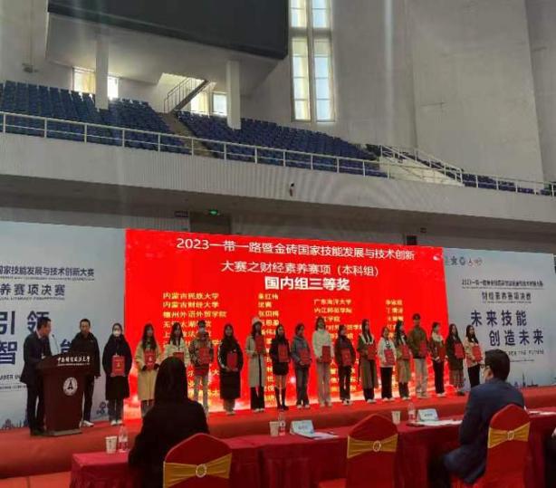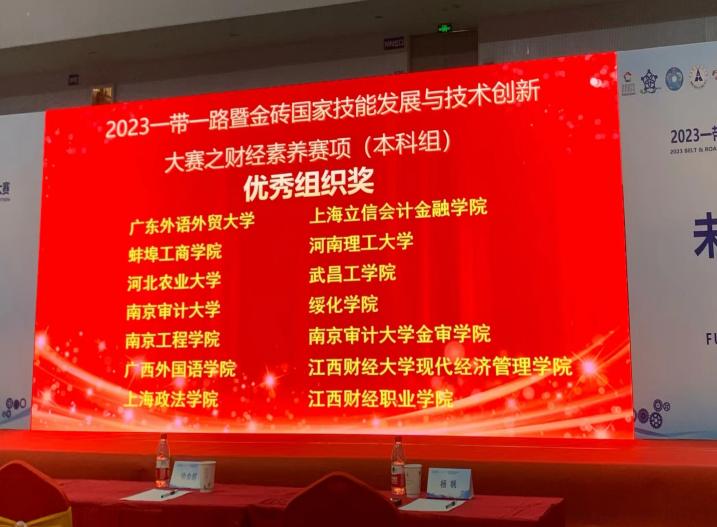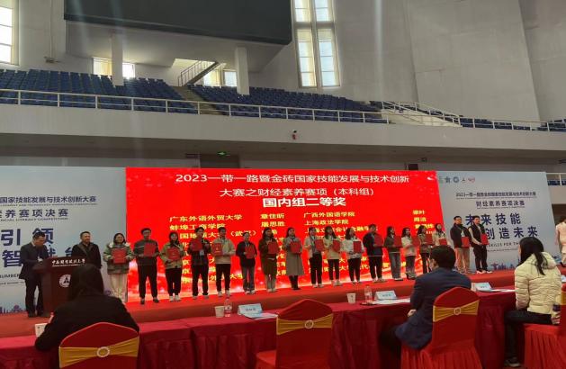 11月25日,2023“一带一路”暨金砖国家技能发展与技术创新大赛财经素养赛项决赛在湖北武汉举行,来自世界8个国家,国内21省市自治区85所高校共计141支队伍参赛。经济管理学院经济学21231周洁同学、审计22282杨伟康同学由朱丹丹老师带队,突出重围、勇闯国赛,分别斩获全国二等奖、三等奖,我校在此次赛事中荣获“优秀组织奖”。