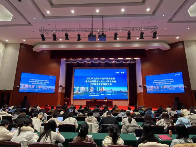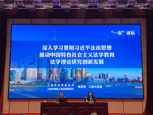 12月4日下午,在第十个国家宪法日来临之际,由我校人工智能法学院、研究生处、学生工作部,上海市法学会人工智能法治研究会和海洋法治研究会共同主办的“一安”讲坛首讲顺利举办。本次讲座主讲嘉宾为上海市法学会会长、上海市高级人民法院原院长、二级大法官崔亚东,讲座主题为“深入学习贯彻习近平法治思想 推动中国特色社会主义法学教育法学理论研究创新发展”。讲座由校长刘晓红教授主持,雨本生物(上海)科技有限公司董事长苗本武先生为“一安”讲坛首讲致辞,人工智能法学院专家委员会主任刘学尧、人工智能法学院院长杨华教授等近二百师生参加了本次讲座。