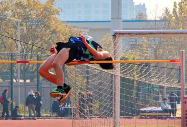 更高的“高”,不仅是力量的充分爆发,也是身体的极度协调。在我校传统强项跳高中,郭俊逸以1.87米的成绩取得第一名,达吾力以1.7m的高度实现了自我的突破,周奕汜、蒲妍越跳越勇,分别取得第五名与第六名的优异成绩。