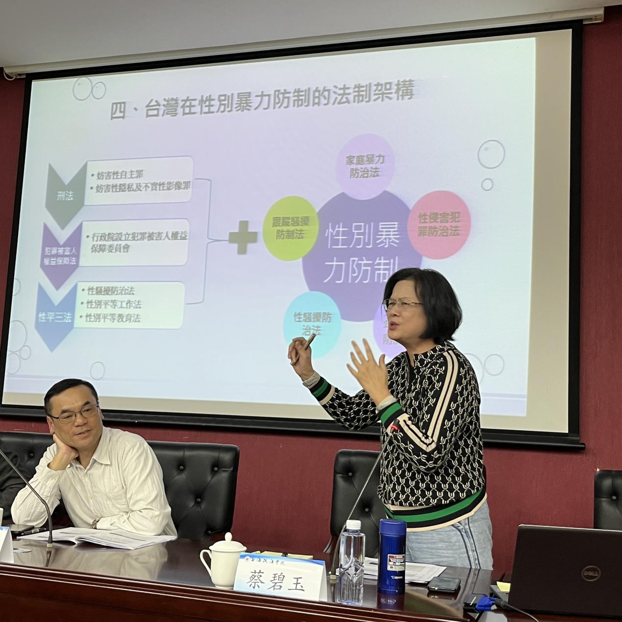 与谈环节,蔡碧玉教授站在司法实务的立场,从“跟踪骚扰行为犯罪化之必要性”“跟踪骚扰行为侵害的法益”等方面阐释自己的见解。