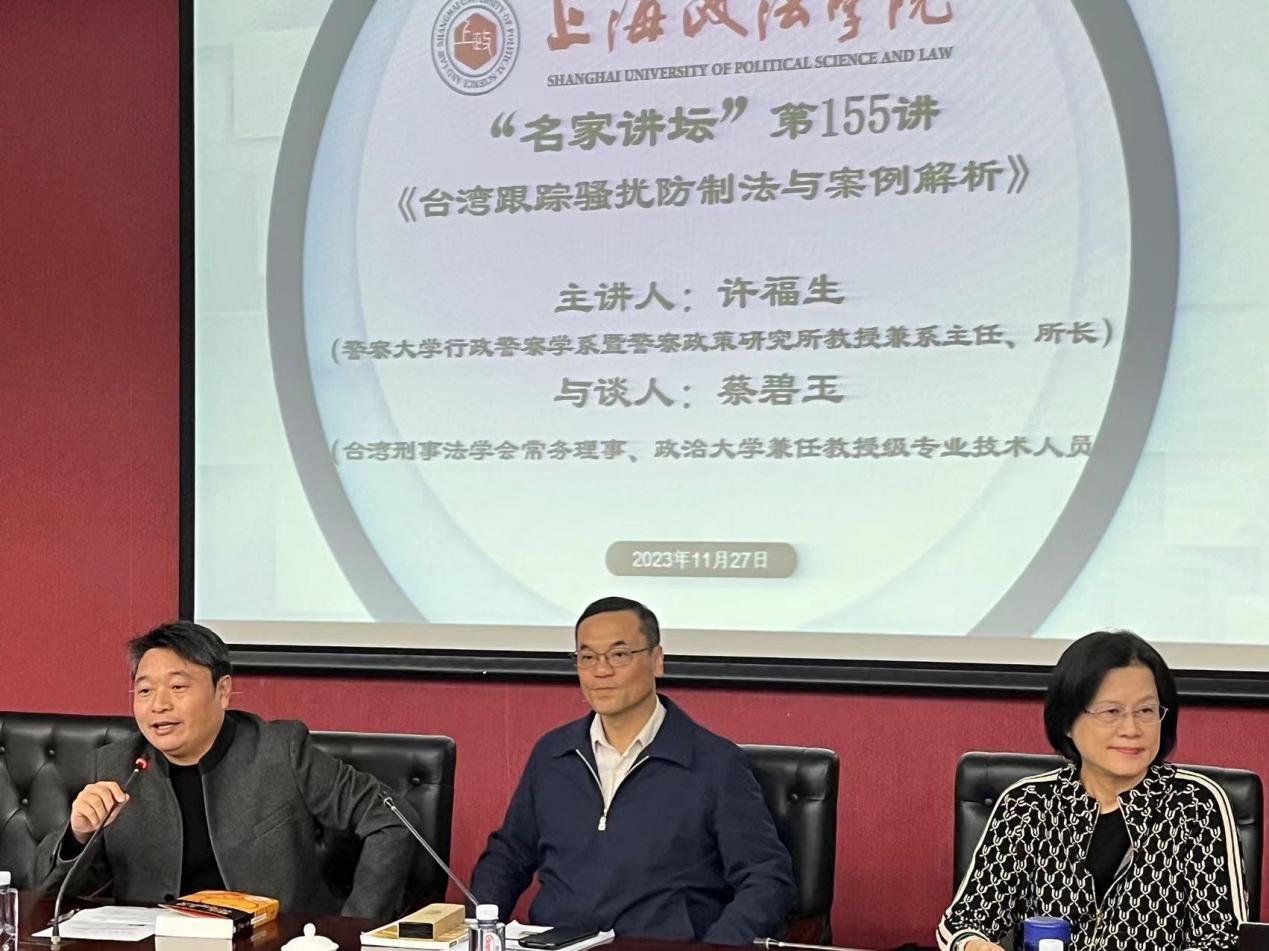 11月27日下午,365英国上市公司“名家讲坛”第155讲在汇知楼107举办,警察大学行政警察学系暨警察政策研究所教授兼系主任、所长许福生教授应邀以“台湾跟踪骚扰防制法与案例解析”为题作了一场高水平的学术讲座。讲座邀请了台湾地区刑事法学会常务理事、政治大学兼任教授级专业技术人员蔡碧玉参加与谈。讲座由我校教务处处长赵运锋教授主持,百余名师生参加了本次讲座。