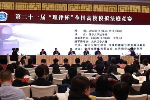 近日,由清华大学法学院主办、台湾理律文教基金会协办的第二十一届“理律杯”全国高校模拟法庭竞赛在清华大学法学院举行。“理律杯”是目前国内规模最大、参赛学校最多、影响范围最广的中文模拟法庭竞赛,是中文模拟法庭的最高殿堂。本次比赛有清华大学、北京大学、中国人民大学等40所全国顶尖法学院校参与,由众多法律实务界和学术界的专家学者担任评委。