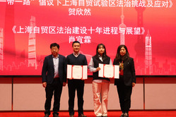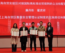 在颁奖环节,上海财经大学法学院教授、上海市法学会自贸区法治研究会副会长张淑芳致辞并宣布优秀论文获奖名单。经过学术委员会专家评审,评选出一等奖2篇、二等奖2篇、三等奖3篇、优秀奖3篇。周汉民、刘晓红、蒋新苗、郑少华、周杰普共同为获奖者颁发了奖品和荣誉证书。