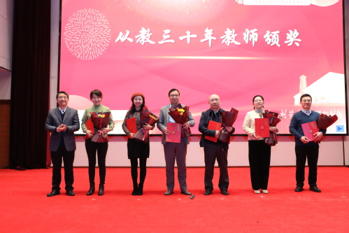 团拜会上,校党委书记葛卫华为从教三十年教师代表李新、顾超、胡键、李诗芳、孙彩虹、潘高荣颁发荣誉证书,感谢他们潜心育人、默默奉献,助力学校各项事业发展。党委副书记、校长刘晓红分别为2023年校长奖获奖团体西部计划项目团队,以及获奖个人姜熙、刘戟、杨凯希(校友)颁奖,表彰他们在各自领域作出的重要贡献。