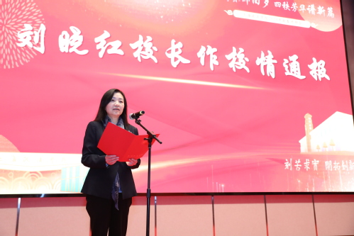 刘晓红向大家致以新春的问候和美好的祝福。她回顾了2023年学校发展取得的成果,强调每一分成绩的背后都凝聚着上政人的辛勤付出,以及各级领导、离退休老同志、广大校友和各界人士的关心支持,并代表学校向大家致以衷心的感谢和崇高的敬意。刘晓红指出,2024年,学校将坚持以习近平新时代中国特色社会主义思想为指导,精心组织开好第二次党代会,持续深化内涵建设,努力提升人才培养质量和办学水平,锐意进取、接续奋斗,力争实现办学层次新突破,以优异的成绩迎接新中国成立75周年和建校40周年。