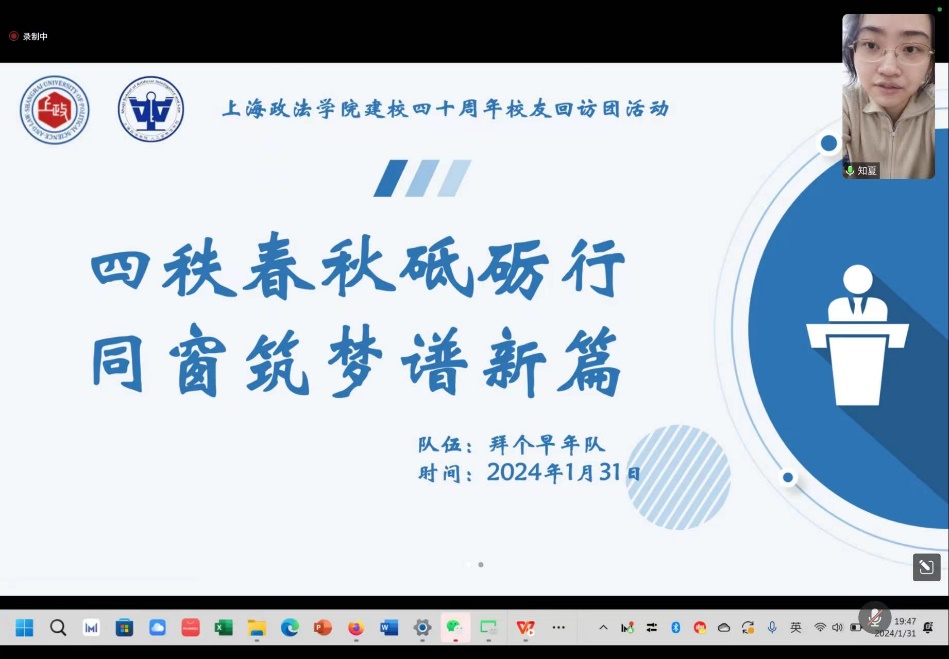 寒假期间,团队先后回访了就职于北京大成(上海)律师事务所、上海融力天闻律师事务所、上海市虹口人社局下属社会保障中心、上海东方公证处等单位的校友江儒嫣、仲思宇、章弈宸、张家栋和就读于圣路易斯华盛顿大学的校友孙霖秋。采访过程中,校友们从职业规划、就业选择、职场经历等诸多方面提供了宝贵建议和经验,鼓励同学们珍惜大学时光,以奋斗成就美好未来。校友们也表达了对学校、学院的感恩之情,希望学校、学院越办越好,培育更多的高质量人才。