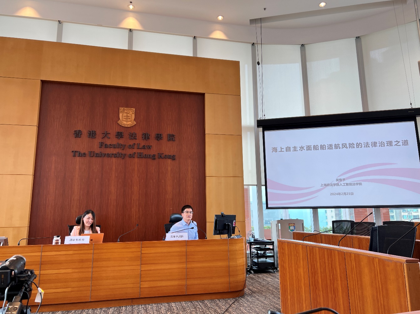 此次论坛共分为9个议题,分别是AI的规范体系、AI与金融纠纷、AI与数据跨境传输、AI与金融、银行和保险、AI与刑法、AI与虚拟货币、AI与土地法、AI与企业及法律服务、AI与海事。我校人工智能法学院杨华教授和吴惟予博士在论坛上分别作了“中国网络与数据保护法律体系”和“海上自主水面船舶适航风险的法律治理之道”的报告。