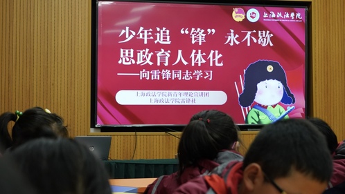 雷锋生前辅导过的学生孙桂琴老师为大中小学生讲课,上政学子做聆听者,更做宣讲人,循着雷锋精神脉络,共同谱就青年互动的温暖画卷。