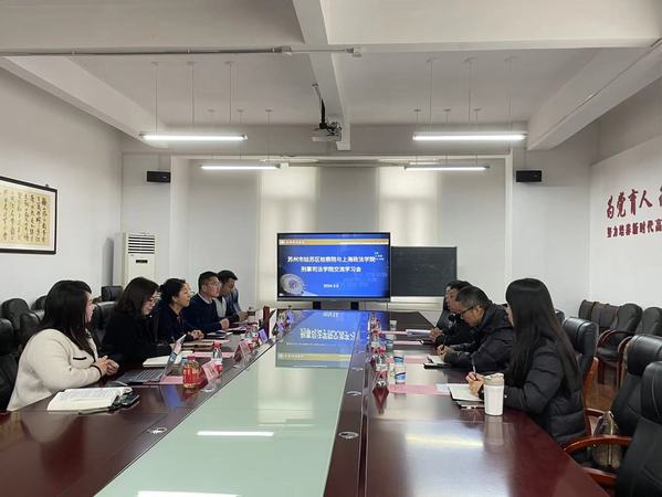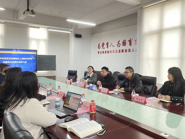 为进一步深化刑事司法学院、纪检监察学院与实务部门的交流,健全完善法治人才的培养,加强检校合作交流,3月6日下午,刑事司法学院、纪检监察学院与苏州市姑苏区人民检察院开展了理论研讨与合作洽谈座谈会。姑苏区人民检察院检委会专职委员陈玺、第一检察部副主任张骏、第七检察部副主任胡舒琼、第一检察部检察官路爱琴,刑事司法学院、纪检监察学院领导姚善英、彭文华、张丽艳及部分教师代表出席会议。会议由刑事司法学院纪检监察学院党总支书记姚善英主持会议。