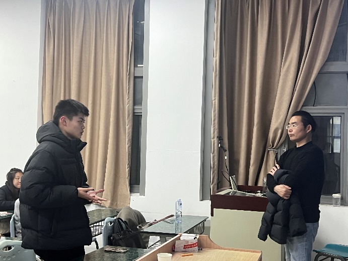在提问环节中,杨华教授耐心解答了同学们关于海洋基本法的完善、“法律战”等方面的问题,并鼓励同学们要培养敢于冒险、勇于挑战和不断创新的精神,勇往直前、勇担大任、勇立潮头,为民族复兴贡献自己的力量。